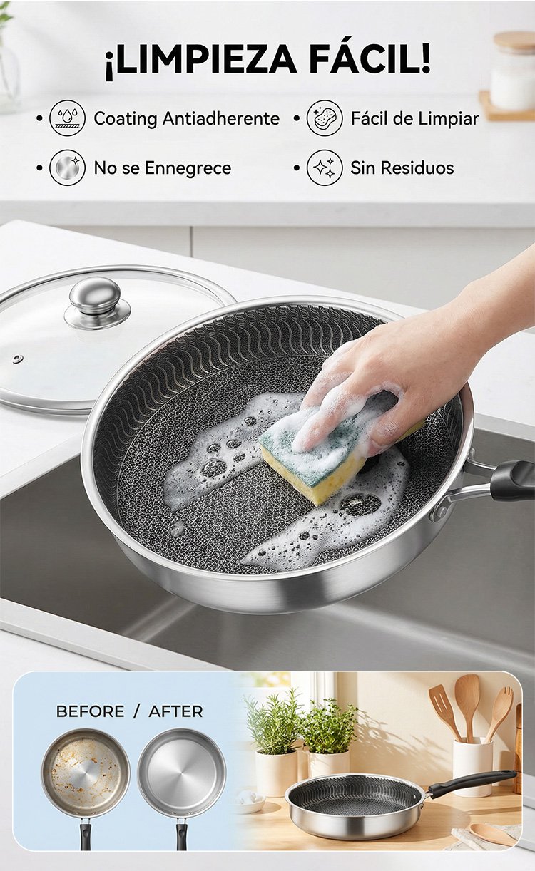 ✨ 0%recubrimientos químicos. Reduce el humo un 80% y ofrece un efecto antiadherente natural.